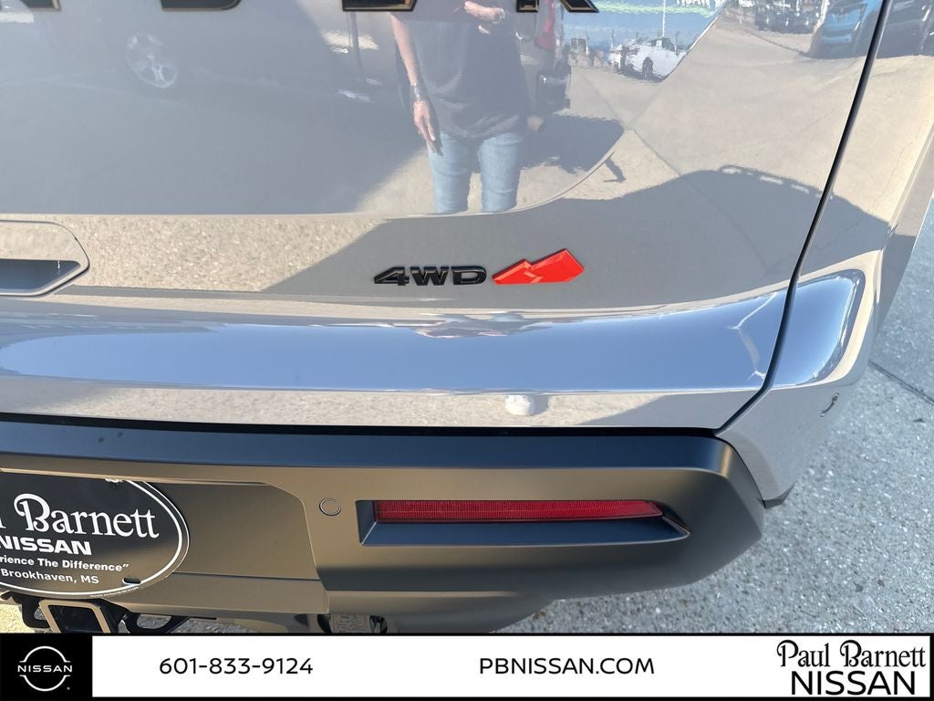 4WD, 18 Painted Alloy Wheels, 3rd row seats: bench, 4-Piece Black Splash Guards, 4-Wheel Disc Brakes, 6 Speakers, ABS brakes, Air Conditioning, Alloy wheels, AM/FM radio: SiriusXM w/360L, Auto High-beam Headlights, Automatic temperature control, Brake assist, Bumpers: body-color, Cloth Seating Surfaces, Delay-off headlights, Driver door bin, Driver vanity mirror, Dual front impact airbags, Dual front side impact airbags, Electronic Stability Control, Emergency communication system: NissanConnect Services, Four wheel independent suspension, Front anti-roll bar, Front Bucket Seats, Front Center Armrest, Front dual zone A/C, Front reading lights, Fully automatic headlights, Garage door transmitter: myQ Connected Garage, Heated door mirrors, Heated Front Bucket Seats, Heated front seats, Illuminated entry, Knee airbag, Low tire pressure warning, NissanConnect featuring Apple CarPlay and Android Auto, Occupant sensing airbag, Outside temperature display, Overhead airbag, Overhead console, Panic alarm, Passenger door bin, Passenger vanity mirror, Power door mirrors, Power driver seat, Power Liftgate, Power steering, Power windows, Radio data system, Radio: AM/FM Audio System with NissanConnect, Rear air conditioning, Rear anti-roll bar, Rear reading lights, Rear seat center armrest, Rear side impact airbag, Rear window defroster, Rear window wiper, Reclining 3rd row seat, Remote keyless entry, Security system, Speed control, Speed-sensing steering, Split folding rear seat, Spoiler, Steering wheel mounted audio controls, Tachometer, Telescoping steering wheel, Tilt steering wheel, Traction control, Trip computer, and Variably intermittent wipers. Price includes: $2000 - Nissan Customer Cash. Exp. 03/31/2026