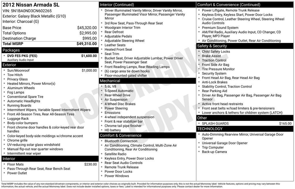 - Vehicle Name: Nissan Armada