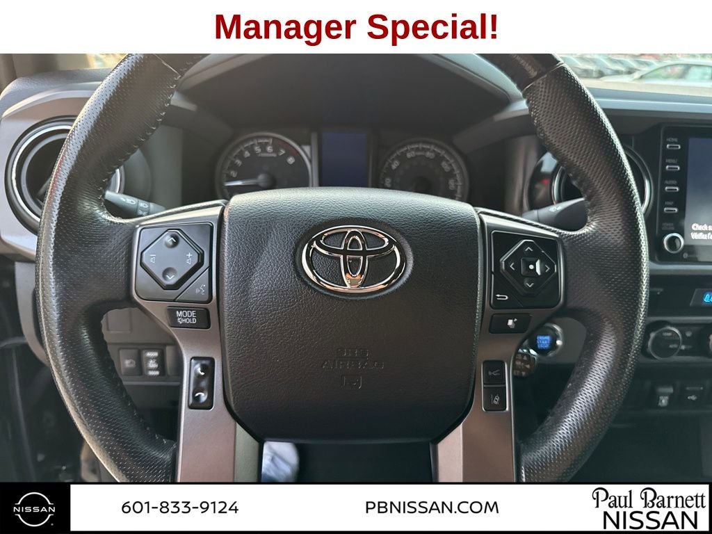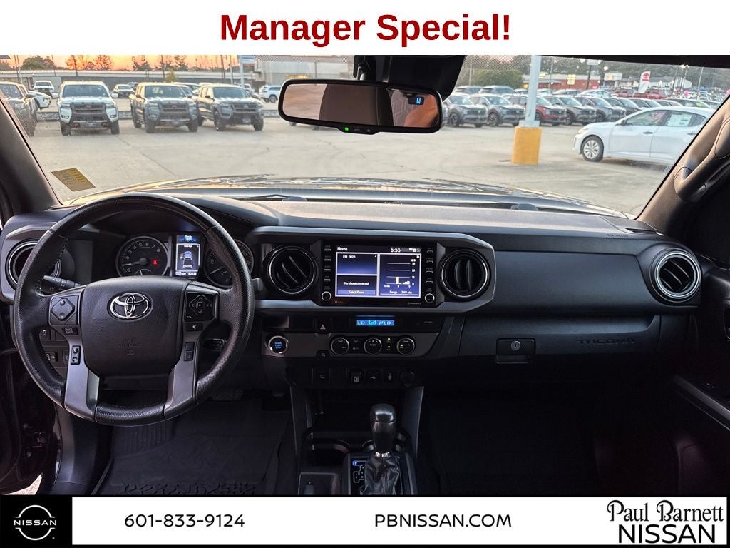 The exterior of this Tacoma exudes a bold, rugged presence with its body-color bumpers, power door mirrors, and rear step bumper. Inside, the cabin offers a wealth of comfort and convenience features, including a tilt and telescoping steering wheel, illuminated entry, and an auto-dimming rearview mirror.
