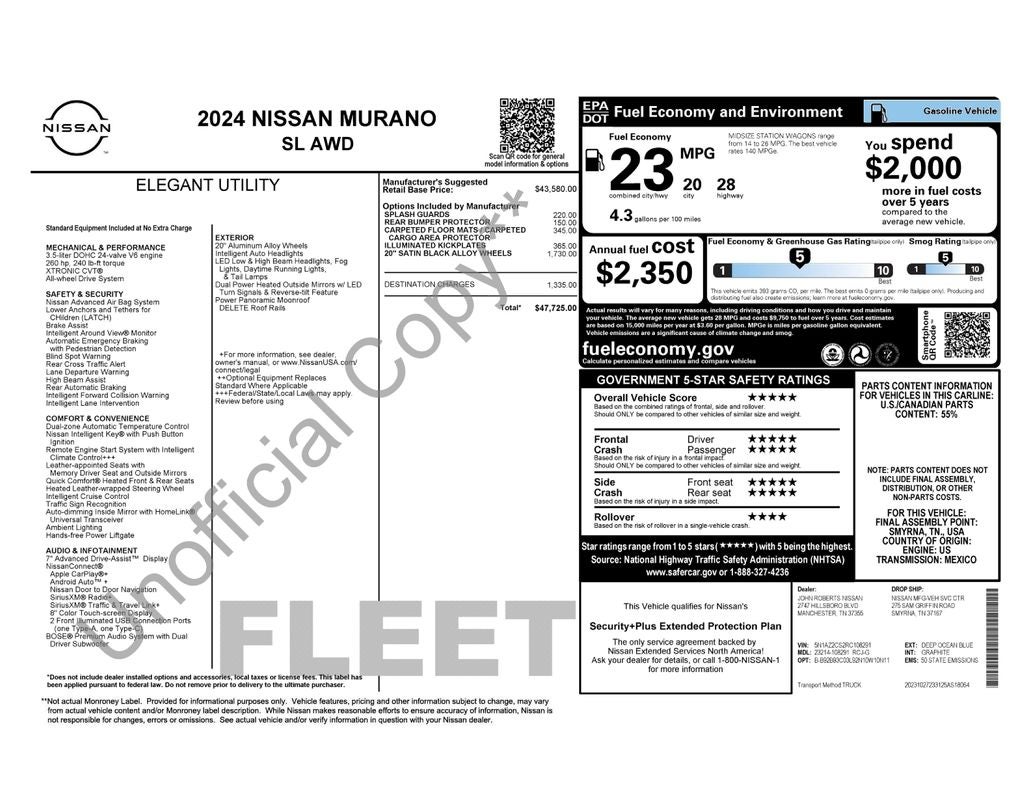 **This 2024 Nissan Murano SL in Deep Ocean Blue Pearl is a great choice and features**, CVT with Xtronic, AWD.