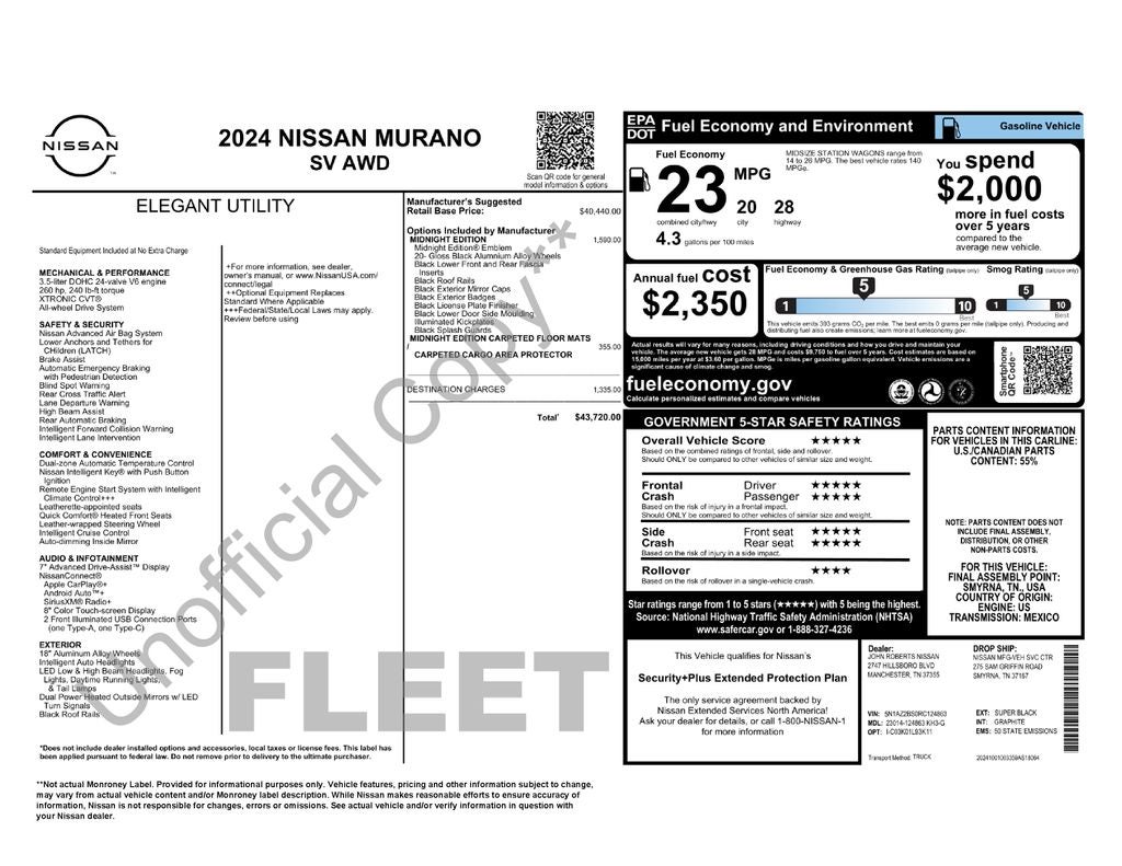 Discover the perfect blend of style, performance, and versatility with this stunning 2024 Nissan Murano SV in Black. This SUV is more than just a mode of transportation - it's a statement of refined taste and uncompromising quality.